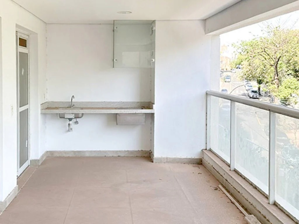 Varanda Gourmet com vista para cidade e infraestrutura para churrasqueira