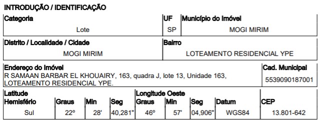 Localização: Terreno em Endereço: RUA SAMAAN BARBAR EL KHOUAIRY | Bairro: LOTEAMENTO RESIDENCIAL YPE | Número: N. 163 QD J MOGI MIRIM - SP